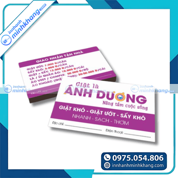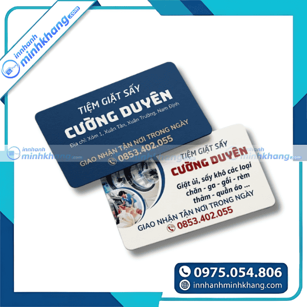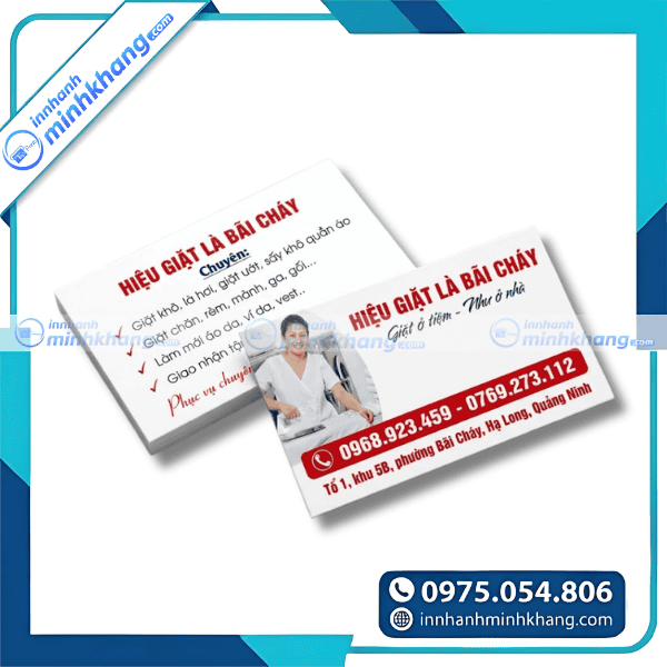 Tóm lại, một chiếc card visit giặt là được đầu tư thiết kế bài bản và in ấn chỉn chu sẽ là trợ thủ đắc lực giúp cơ sở kinh doanh của bạn gia tăng doanh thu và xây dựng tệp khách hàng trung thành bền vững. Đừng để thương hiệu của bạn nhạt nhòa giữa hàng trăm đối thủ cạnh tranh trên thị trường. Hãy nhấc máy và liên hệ ngay với In Nhanh Minh Khang qua hotline: 0975.054.806 để được tư vấn các giải pháp in ấn đột phá và nhận báo giá ưu đãi nhất ngay hôm nay!