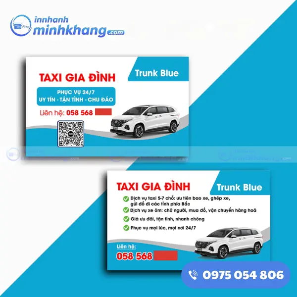 Thiết kế chuyên nghiệp – dễ nhớ, dễ gọi xe: Hỗ trợ thiết kế name card taxi theo yêu cầu, tối ưu bố cục số điện thoại, tên tài xế, giúp khách hàng dễ lưu số và liên hệ lại. Nhiều mẫu name card taxi đẹp, phù hợp cho cả name card taxi cá nhân lẫn name card taxi công ty.