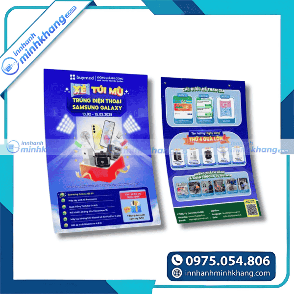 - Kích thước A5 (14.8 x 21 cm): Thích hợp cho các chiến dịch quảng bá một dòng sản phẩm cụ thể (như ra mắt mẫu điện thoại mới) hoặc các cửa hàng có quy mô nhỏ, nội dung thông điệp ngắn gọn.