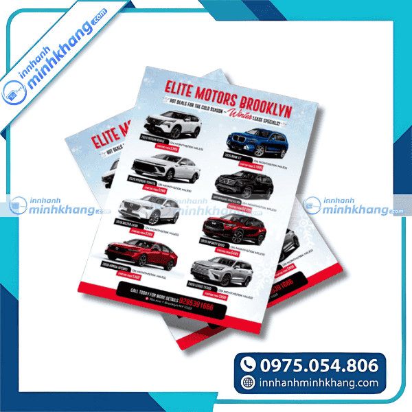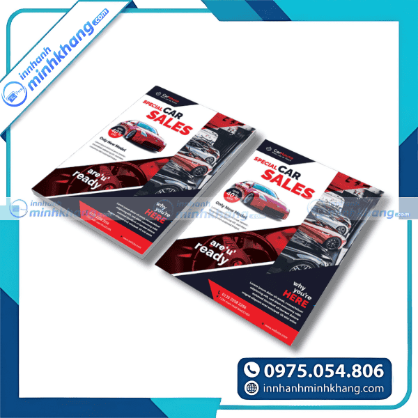 Một mẫu tờ rơi ô tô chất lượng, hình ảnh sắc nét và thiết kế chuyên nghiệp chính là phương thức giao tiếp trực quan và hiệu quả nhất để chinh phục khách hàng. Nếu bạn đang có nhu cầu thiết kế và in ấn ấn phẩm này, hãy liên hệ ngay với In Nhanh Minh Khang qua hotline: 0975.054.806 để được tư vấn miễn phí và nhận báo giá ưu đãi nhất. Chúng tôi cam kết đồng hành cùng doanh nghiệp của bạn tạo ra những chiến dịch truyền thông bứt phá và thành công.